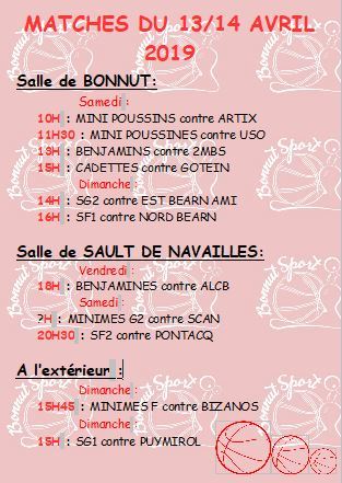 MATCHES DU 13/14 AVRIL