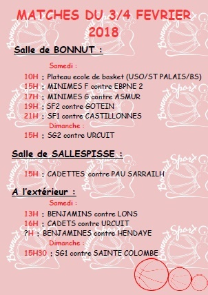 MATCHES DU 3/4 FEVRIER