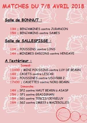MATCHES DU 7/8 AVRIL