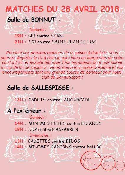 MATCHES DU 28/29 AVRIL