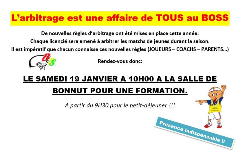 Nous organiserons 3 sessions de formation pour nos jeunes mais aussi nos coachs, dirigeants, supporters ... car l'arbitrage dans nos clubs c'est l'affaire de tous.